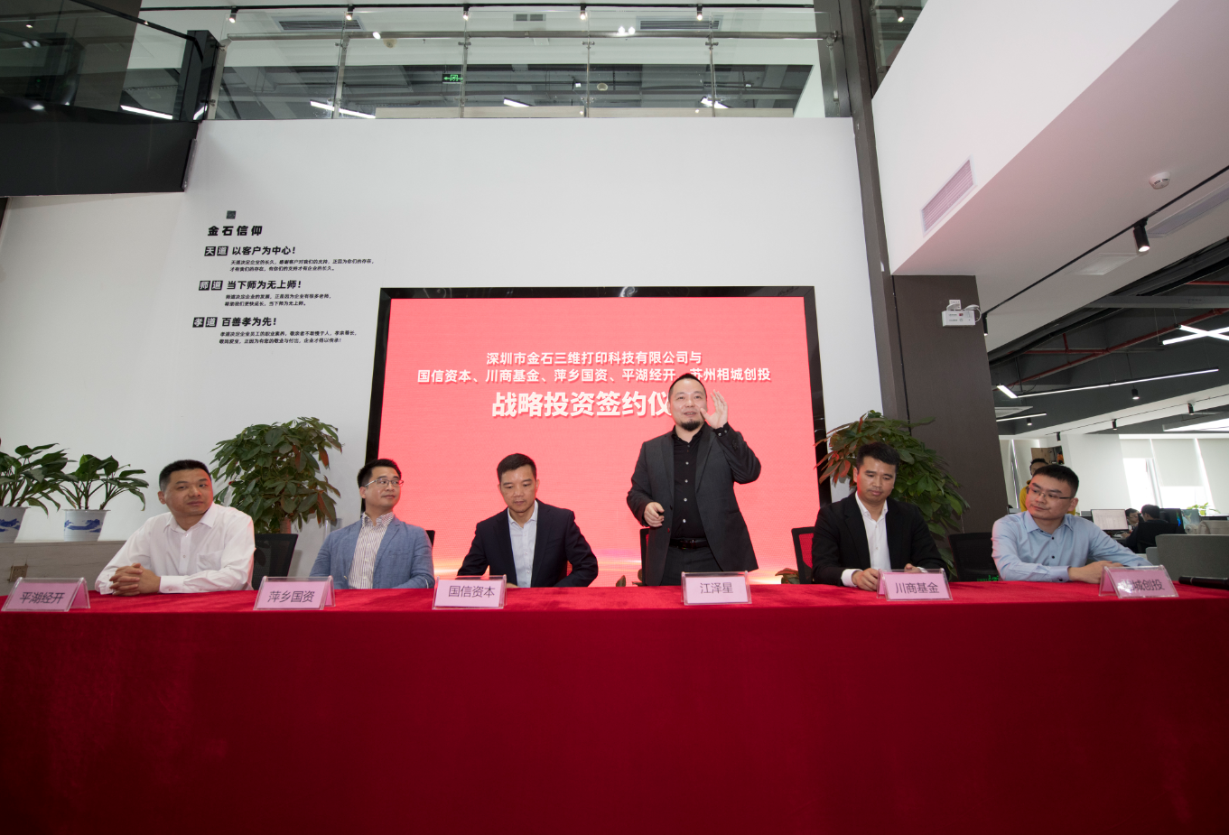3月9日,HTH.COM华体会,(以下简称“金石三维”)新一轮战略投资签约仪式在深圳金石三维总部顺利举行。本轮投资的投资方主要是金石三维生产研发基地的地方国资基金,包括深圳国资委旗下的国信资本,江西萍乡国资,浙江平湖经开国资,苏州相城创投以及四川川商基金。此次战略投资完成后,公司估值超过26亿元。