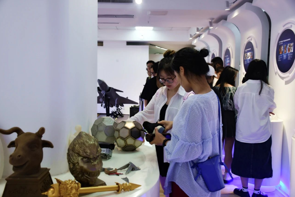 走进平日接触不多的工业级3D打印+应用型企业,学生们仿佛步入了新世界的大门。在重庆金石人事行政总监、总经理助理柏莹雪的带领下,大家依次参观了我司的金属3D打印中心、砂型3D打印中心、尼龙3D打印中心、树脂3D打印中心、快速模具中心、产品应用中心和技术应用展厅等多个板块。